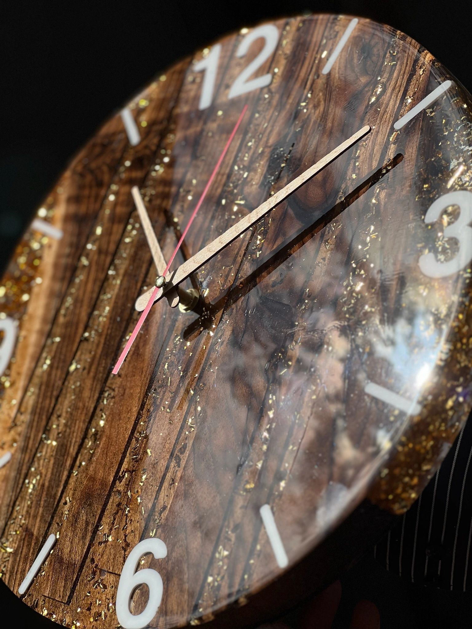Realizăm la comandă ceasuri din lemn și rășină, unicat, adaptate stilului și dorințelor tale. Poți alege dimensiunea, tipul de lemn, culoarea rășinii și detaliile speciale pentru un ceas personalizat, făcut special pentru tine.